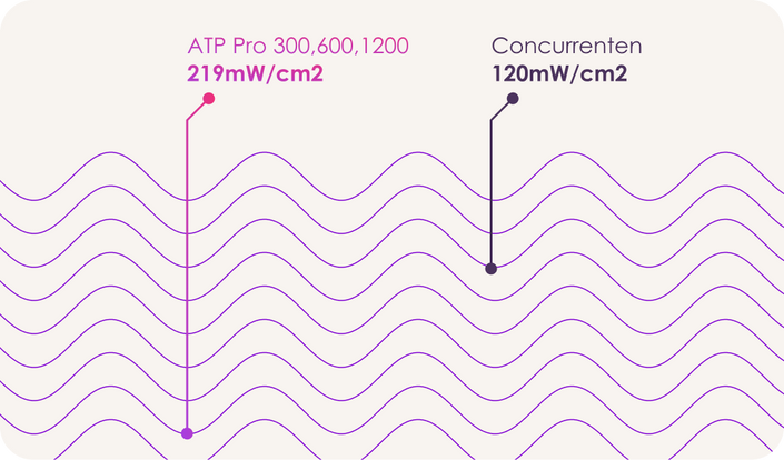 Experience the latest generation of red light therapy. The ATP Pro series features eight (the ATP Pro 350 six) carefully selected wavelengths, including 590 nm, 630 nm, 660 nm, 810 nm, 850 nm, 940 nm, 1060 nm, and 1072 nm, for an optimal combination of skin rejuvenation, pain relief, and deep muscle recovery.