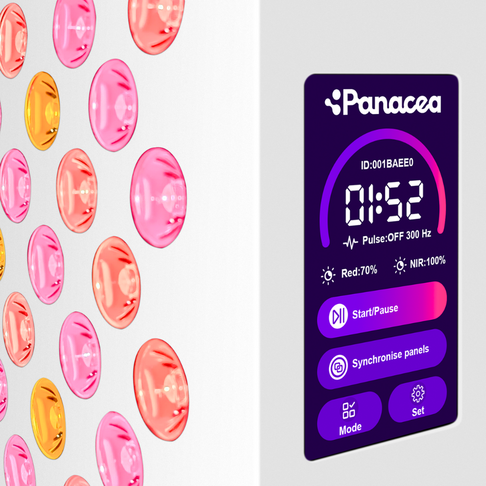 The newATP Pro Seriesfrom Panacea Light Therapy combines six advanced wavelengths for optimal recovery, skin improvement and energy boosts. With high intensity, adjustable light strength and pulsing mode, this panel offers maximum effectiveness at a cellular level. For faster recovery, pain relief and vitality - completely tailored to your needs.
